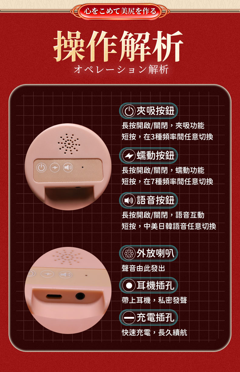 柯基臀【吮吸青春款】細膩皮膚 顆紋陰肛二穴自慰器﹝智能夾吸吮+震動﹞贈耳機