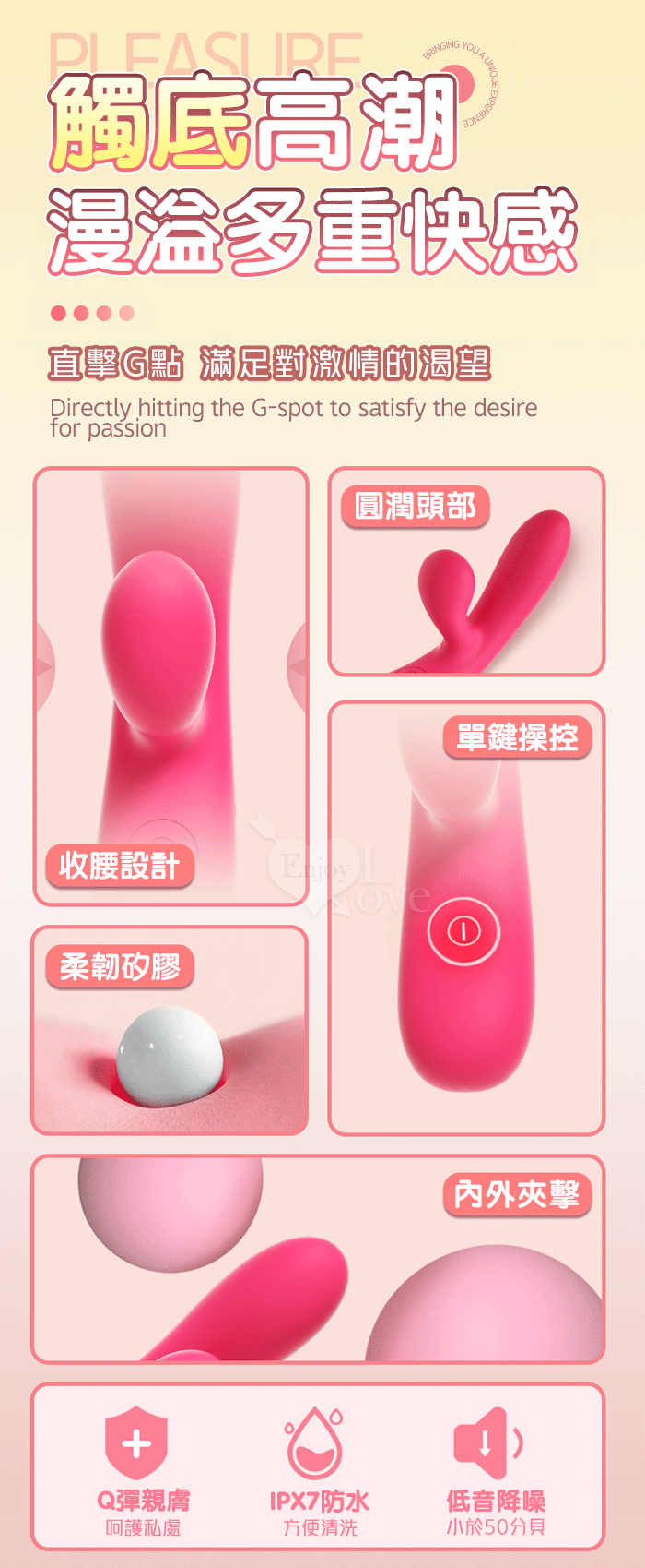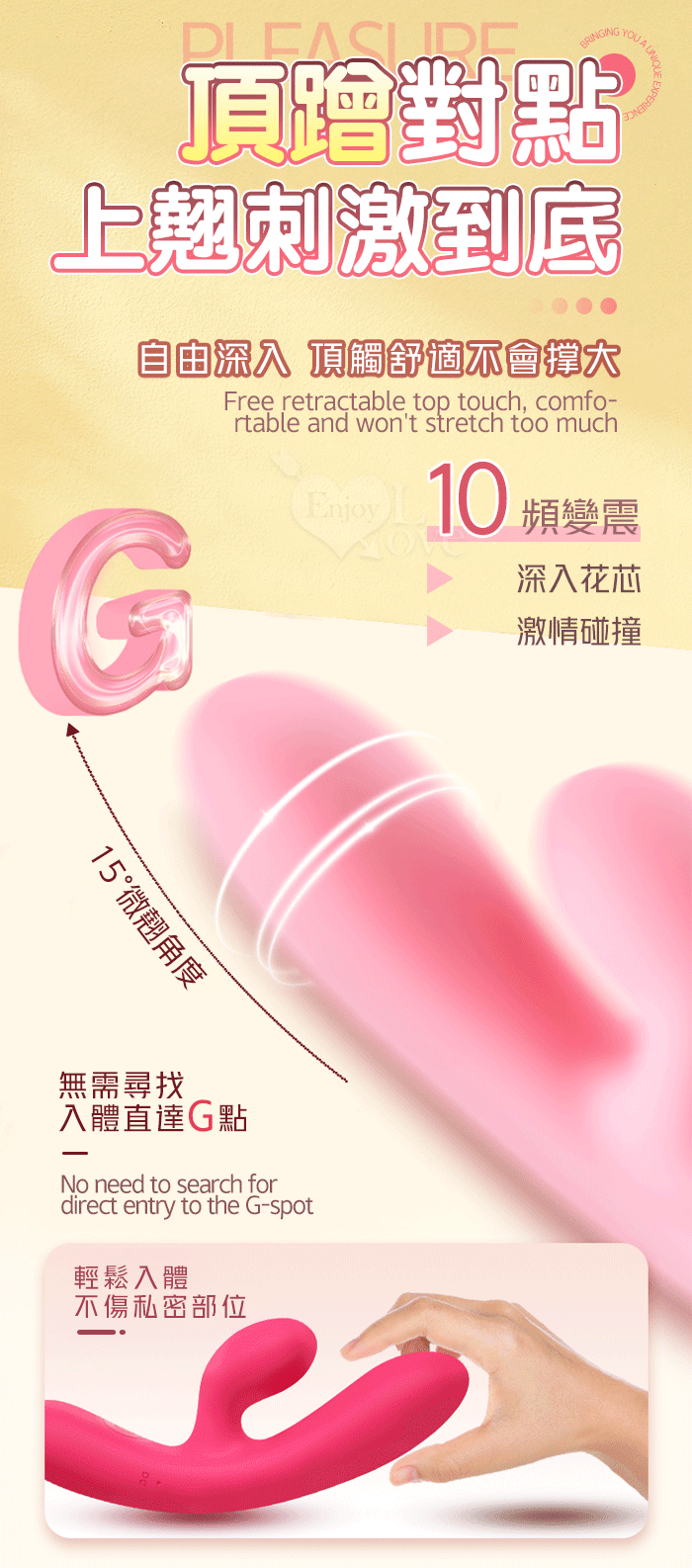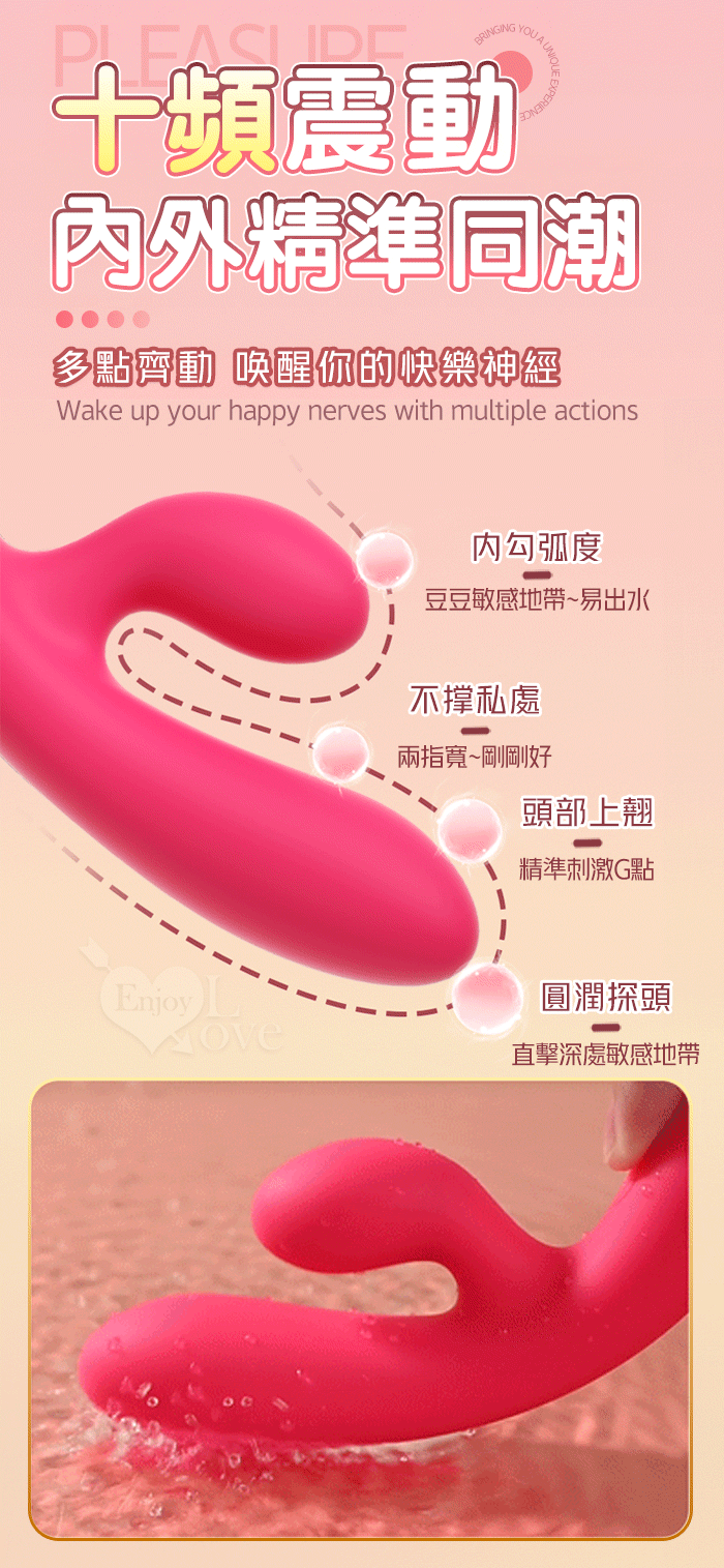 | PLEASURE 西婭 ‧ 雙強震動10頻撩撥入體內外刺激G點按摩棒﹝親膚矽膠/收腰設計/15微翹角度﹞洋紅