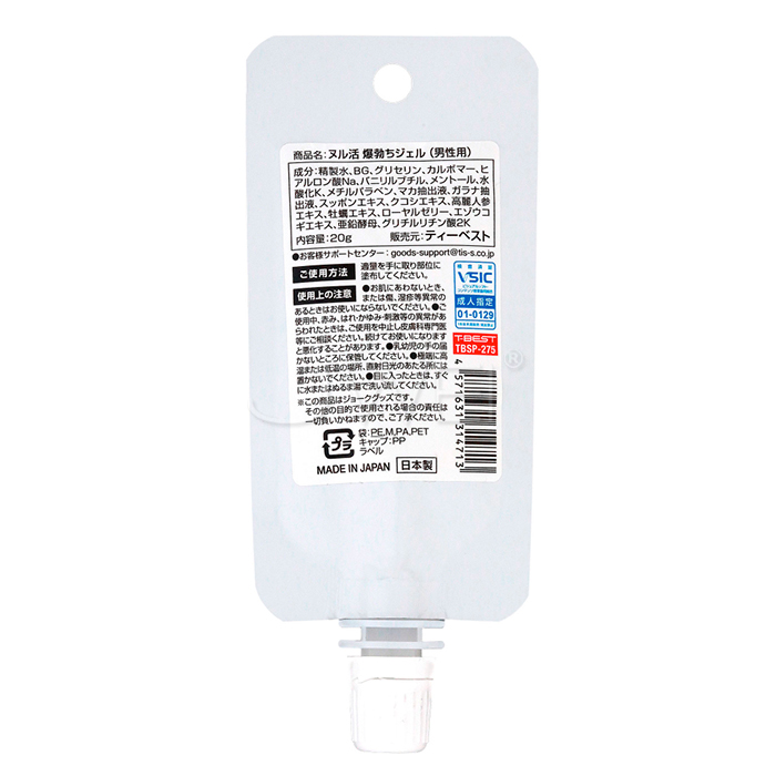 いつもと違う刺激を求めるアナタに! 塗るだけ簡単!大人のヌル活で快感ブースト! 温冷W刺激×活力エキスで漲る自信を!! 安心・安全の日本製。 ■商品サイズ(mm)縦145横60奥行18 ■商品重量(g)20