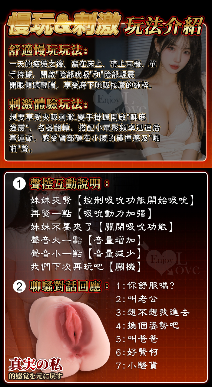 聞音美熟女 ‧ 全智能聲控對話互動 12X吮吸+12X震動~真實の私完壁肉感雙層潮紅溫暖通道電動名器﹝附耳機﹞