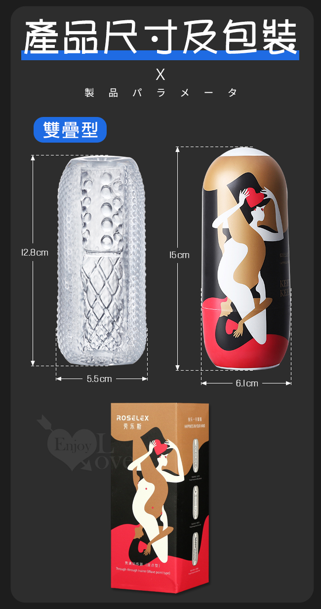 ROSELEX 勞樂斯‧ 快樂一手掌握 觸點層次起伏Q彈水晶膠體自慰套﹝雙疊型﹞