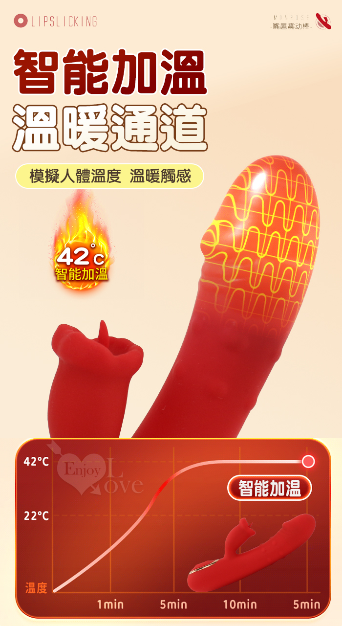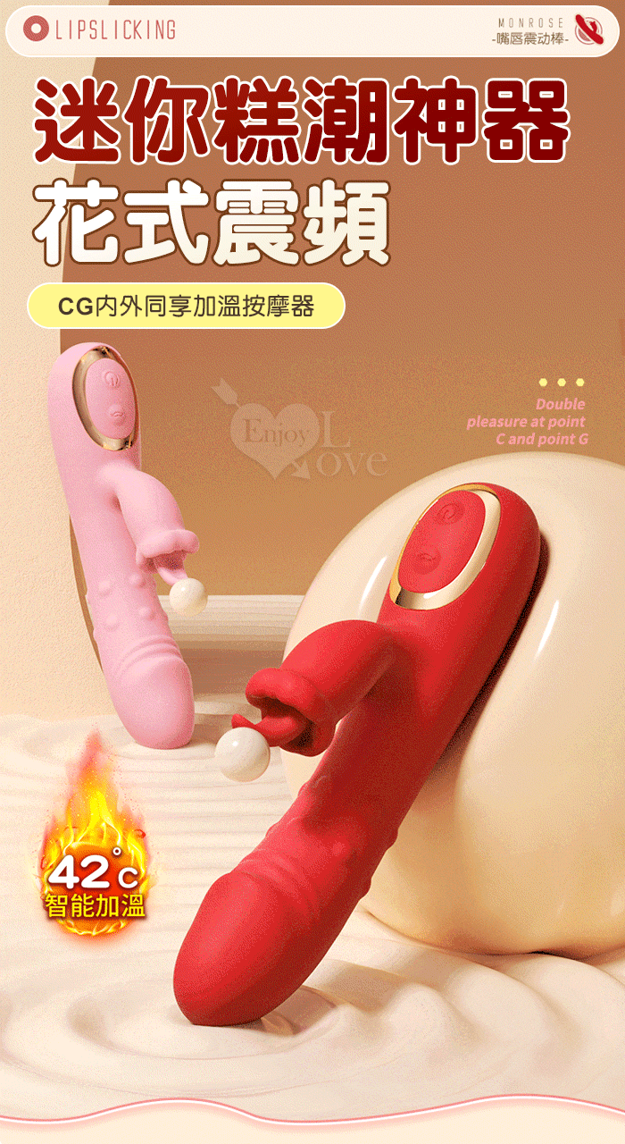 ROSELEX 迷你糕潮神器 雙10頻雙激震舌擊點 CG內外同享加溫按摩器 - 粉